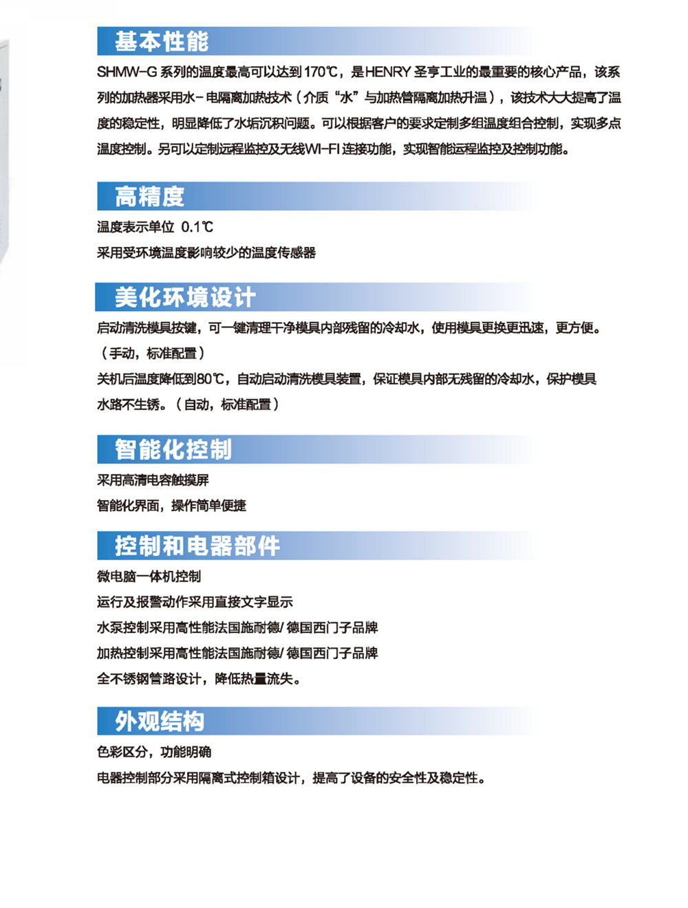 生产与销售模具清洗机、模具监视器、除湿干燥机、模温机、注塑机水-电-气系统等机器。HI-NICE助力实现现代化工厂,HI-NICE 着手开发相关产品,希望对成型工厂现状进行诊断,并全面开展提高生产率的提案。