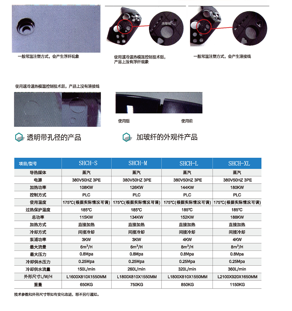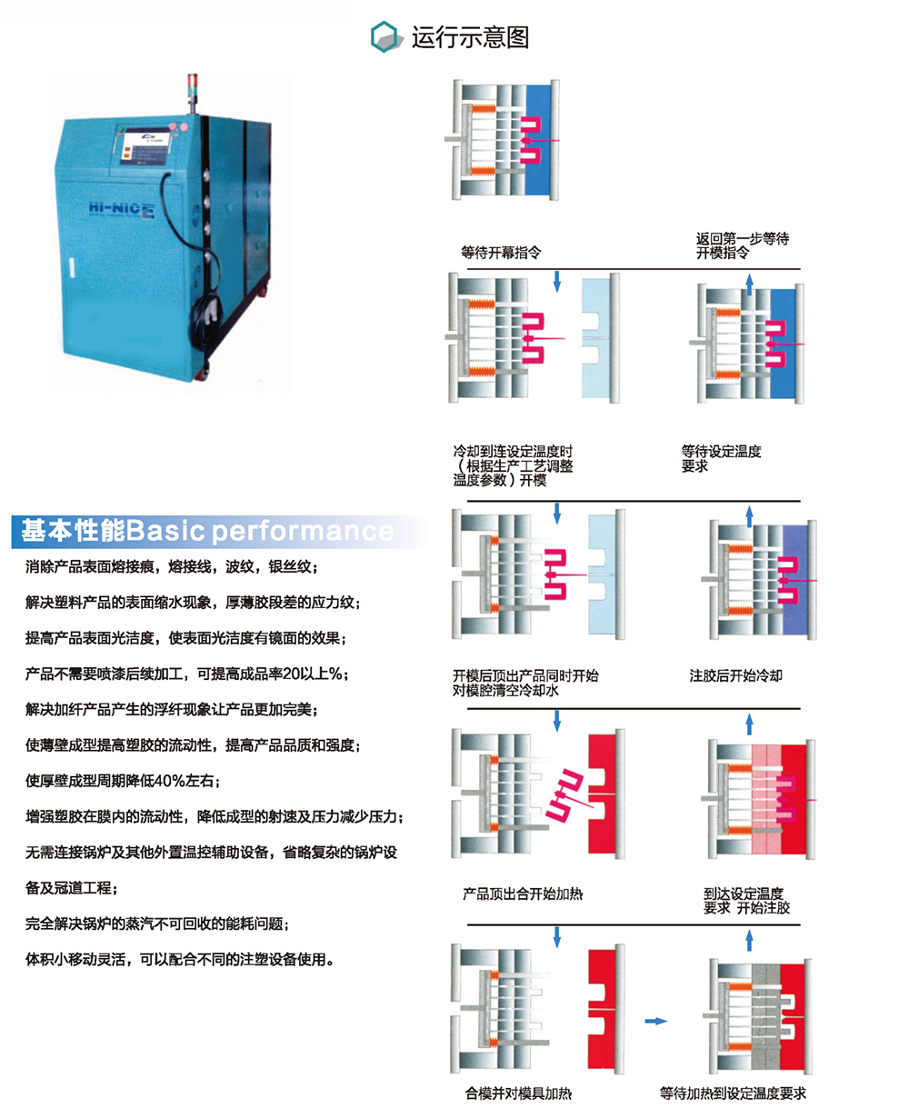 RHCM系统蒸汽注塑成型技术,透过运用蒸汽与冷却水切换,将模具表面快速升温与快速降温,从而改变塑料产品表面特性。无接合线,表面镜面高光,缩减成型周期。